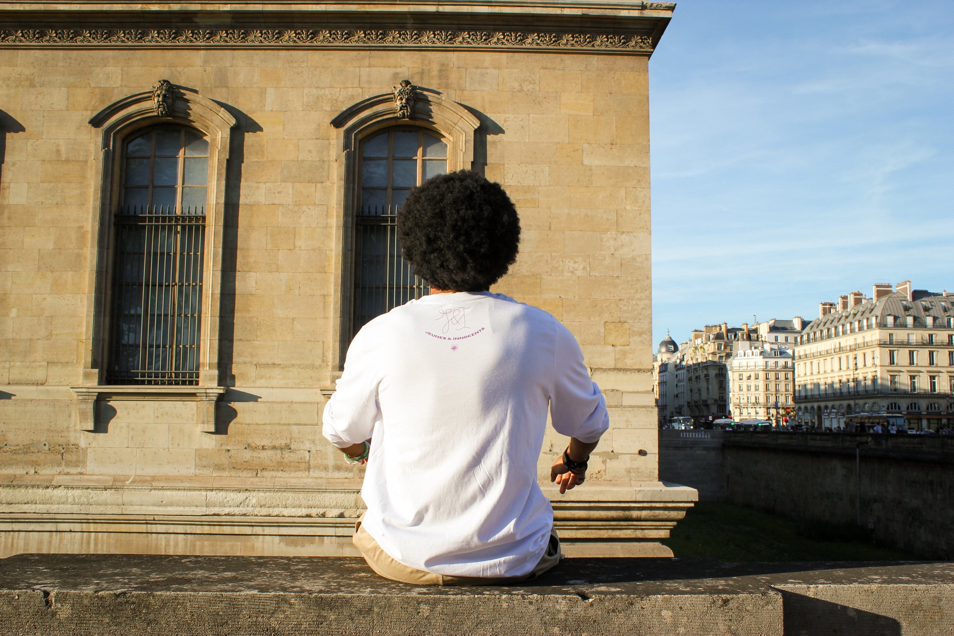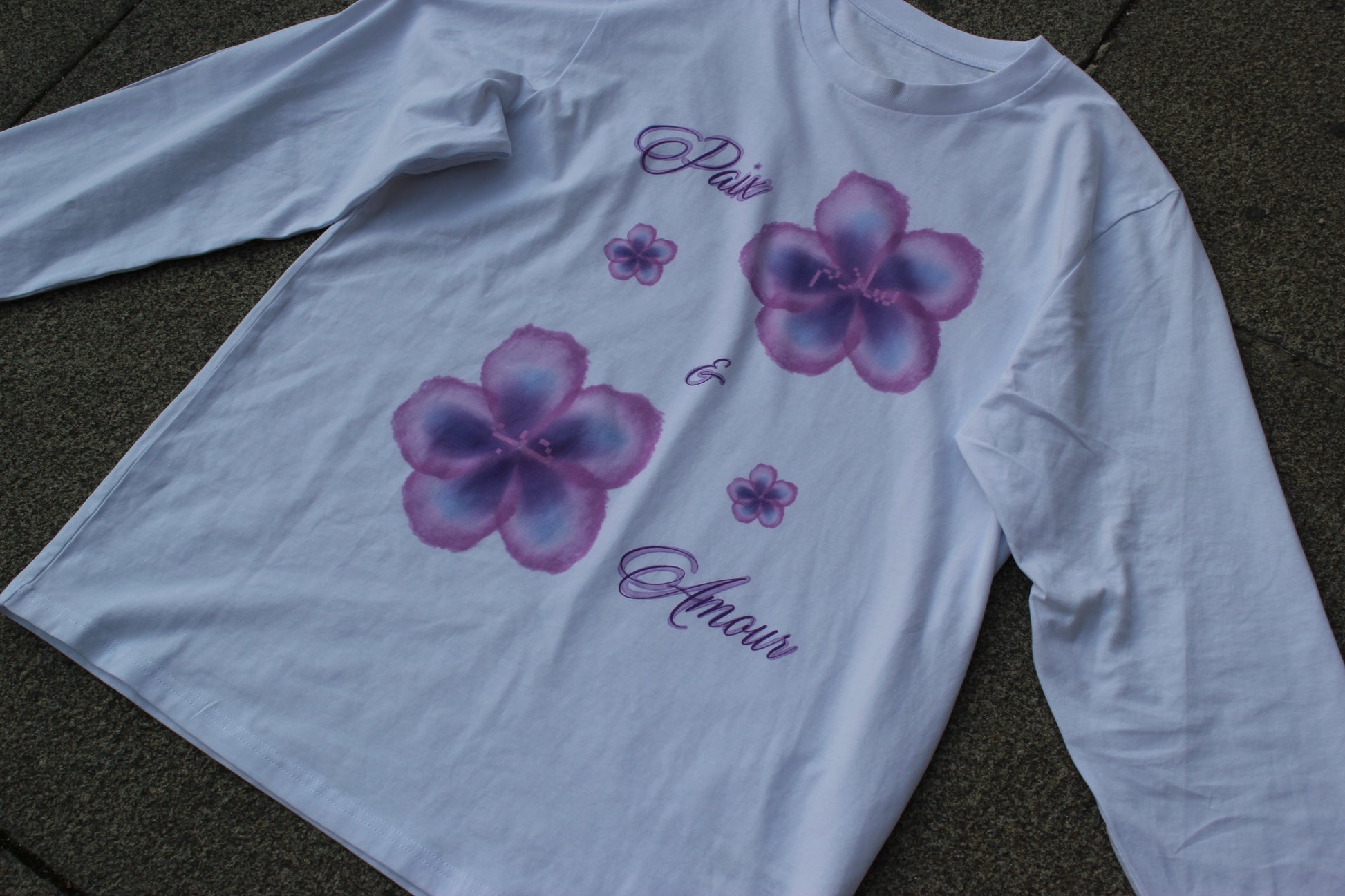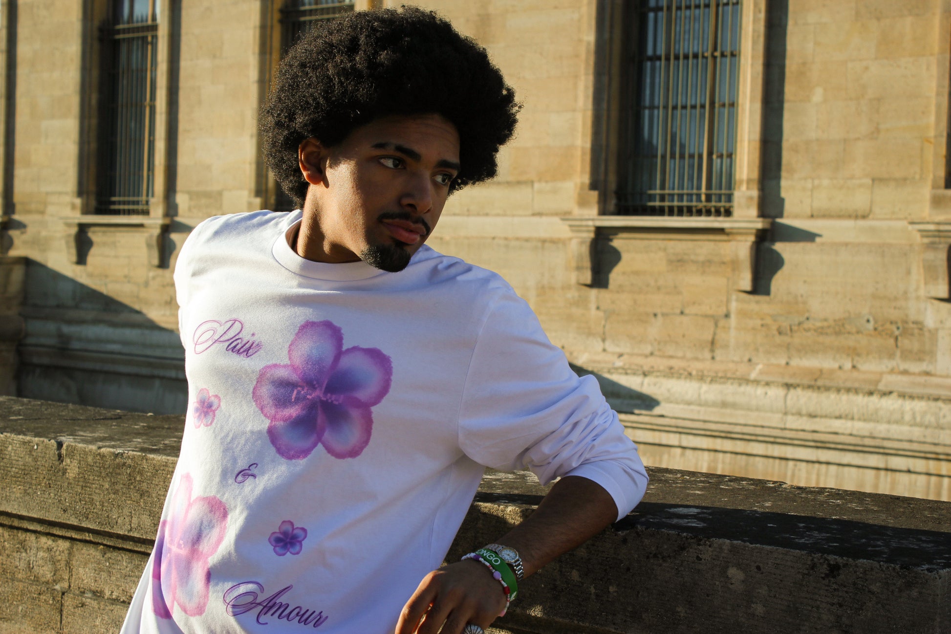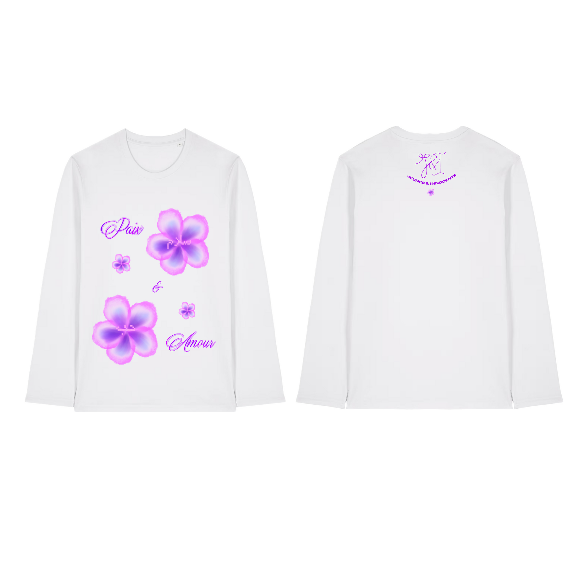 ALLIE FIÈREMENT DOUCEUR ET CARACTÈRE AVEC LE TEE SHIRT MANCHES LONGUES PAIX & AMOUR.